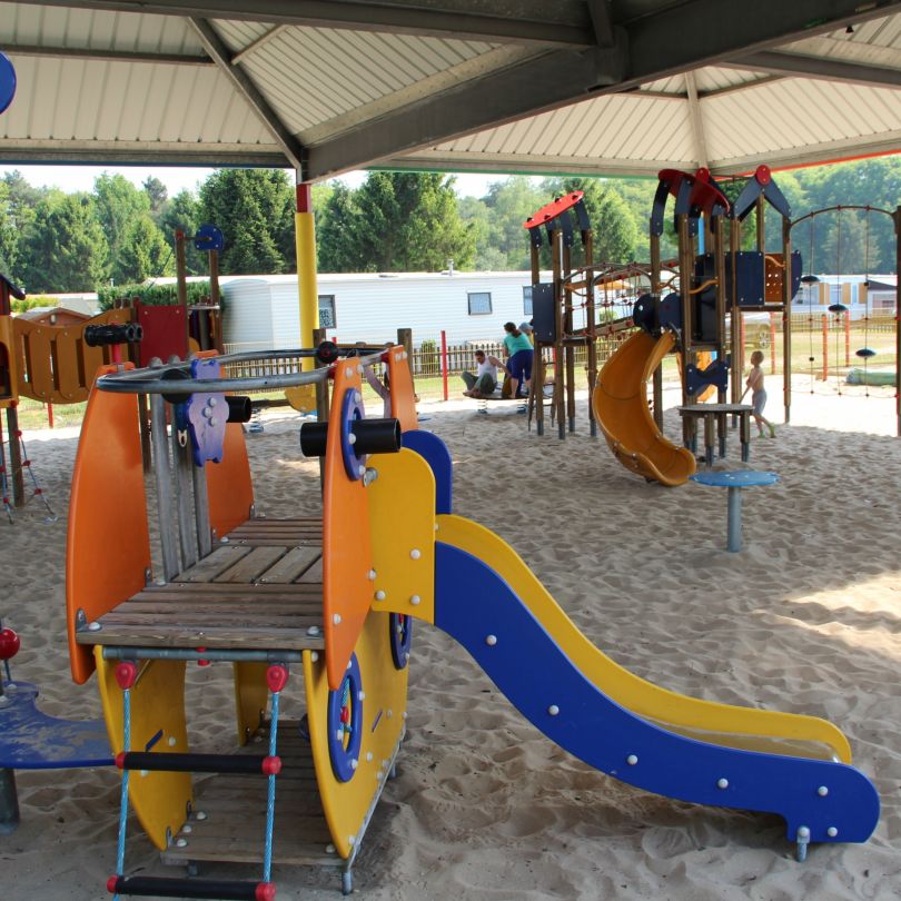 De toestellen onder de beschermende daken van De Pyramide zijn maar een klein deel van ons speelplein. Want wie op vakantie is, wil als het éven kan ten volle genieten van de zon. Dat geldt natuurlijk ook voor de kinderen.