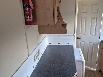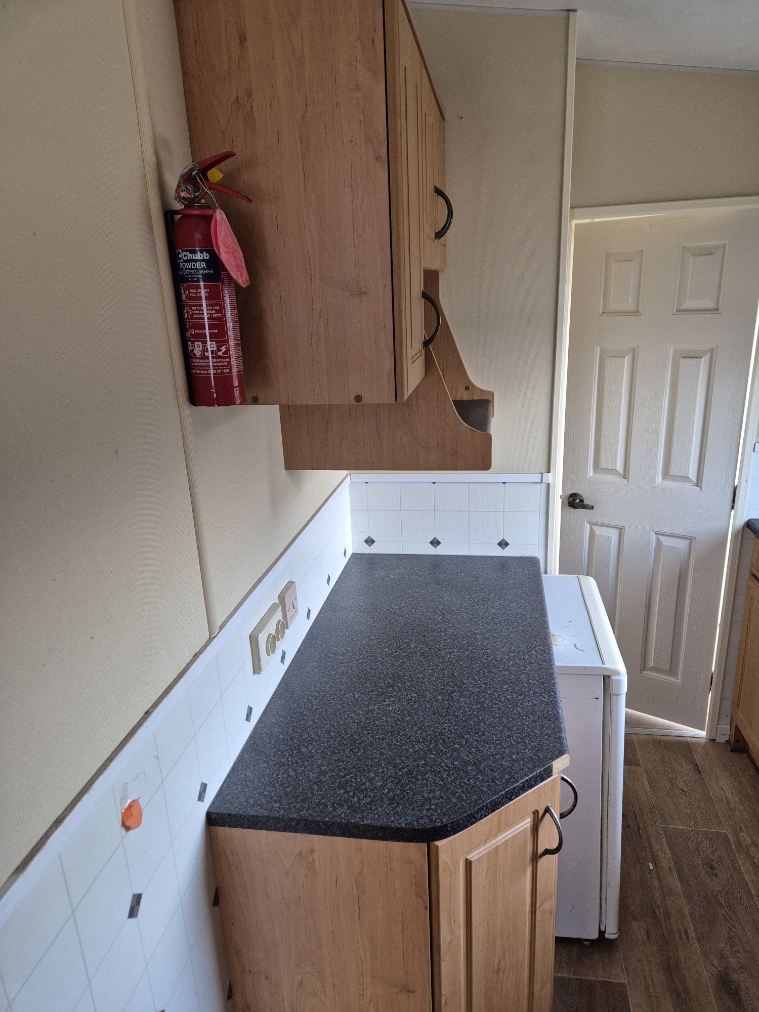 Ijskast, oven veel kjasten en afwasbak aanwezig in de keuken.
